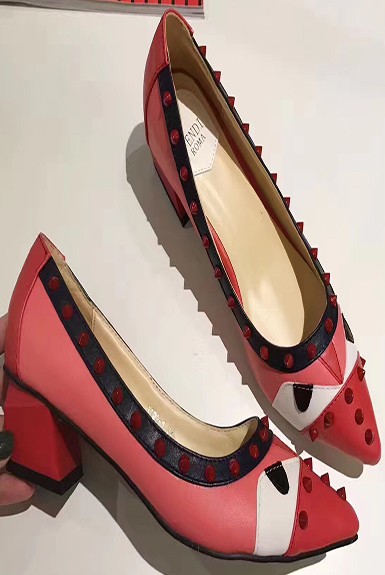 Trong kiểu dáng của một đôi giày Pump, cao gót bít mũi, mũi nhọn và bít gót, Guốc đế vuông hình thú đính đinh cá tính dù vô cùng duyên dáng nhưng lại rất mạnh mẽ, táo bạo, gây nên một hiệu ứng cực lớn về thị giác, khiến cho chủ nhân của nó thu hút hơn trong đôi mắt của mọi người.