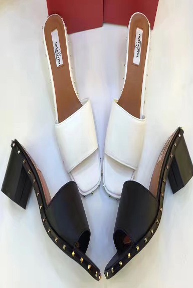 Giày cao gót valentino với kiểu dáng mules thời thượng đảm bảo sẽ mê hoặc trái tim của bất kì một cô nàng yêu giày nào. Trong chất liệu da nhẵn sang trọng, cùng chiếc gót vuông đặc trưng, đôi giày xuất hiện vô cùng quyến rũ dù cực kì tối giản. Trên đôi chân thon thả của các bạn gái, đôi giày với 2 gam màu trắng và đen kinh điển, chưa bao giờ thôi hạ nhiệt trên các sàn diễn thời trang.