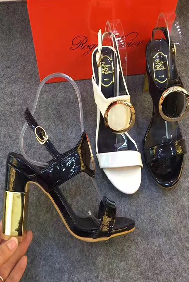 Tính thời trang của mẫu giày cao gót Roger kiểu sandal cài dây này còn thể hiện ở hai chiếc quai ngang mảnh dẻ đính vòng kim loại trang trí cũng như chiếc đế vuông được mạ vàng. Nhờ thế, bạn có thể diện nó kể cả trong những trường hợp trang trọng mà không e ngại kiểu dáng quá đơn giản, phổ thông. Quan trọng là, chẳng cần “hành hạ” đôi chân của mình trên những đôi giày cao lênh khênh, các chị em vẫn rất sành điệu trong thiết kế chỉ với hai màu trắng, đen tối giản.