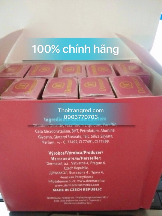 đã kiểm tra trang website dermacol chính hãng ở CH séc, đúng như shop nói là bên ngoài phải có hộp đỏ chứa 10 hộp sản phẩm. Hèn chi nhiều chỗ toàn đưa hình sản phẩm chứ ko dám chụp hộp đỏ này. Mình đang quan tâm sản phẩm này cho đám cưới vì giá rất tốt mà chất lượng không thua phấn nước của hàn quốc, Cuối tuần mình sẽ đặt bên shop.