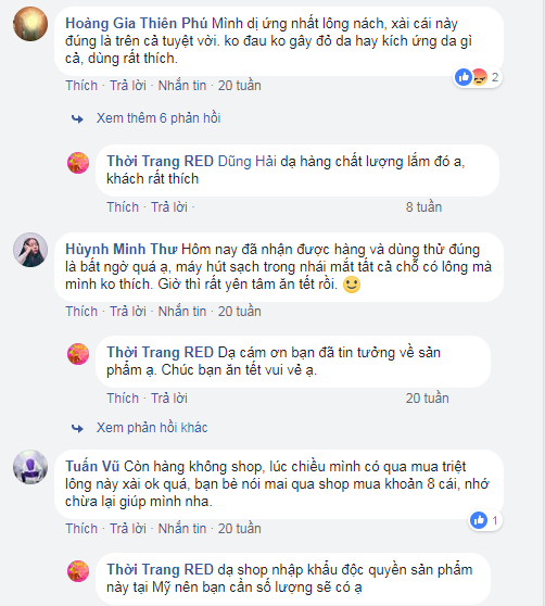 e đã sữ dụng máy rất ok nha shop, đúng như shop quảng cáo, sữ dụng lần đầu tới giờ không thấy lông mọc lại luôn. Thanks shop
