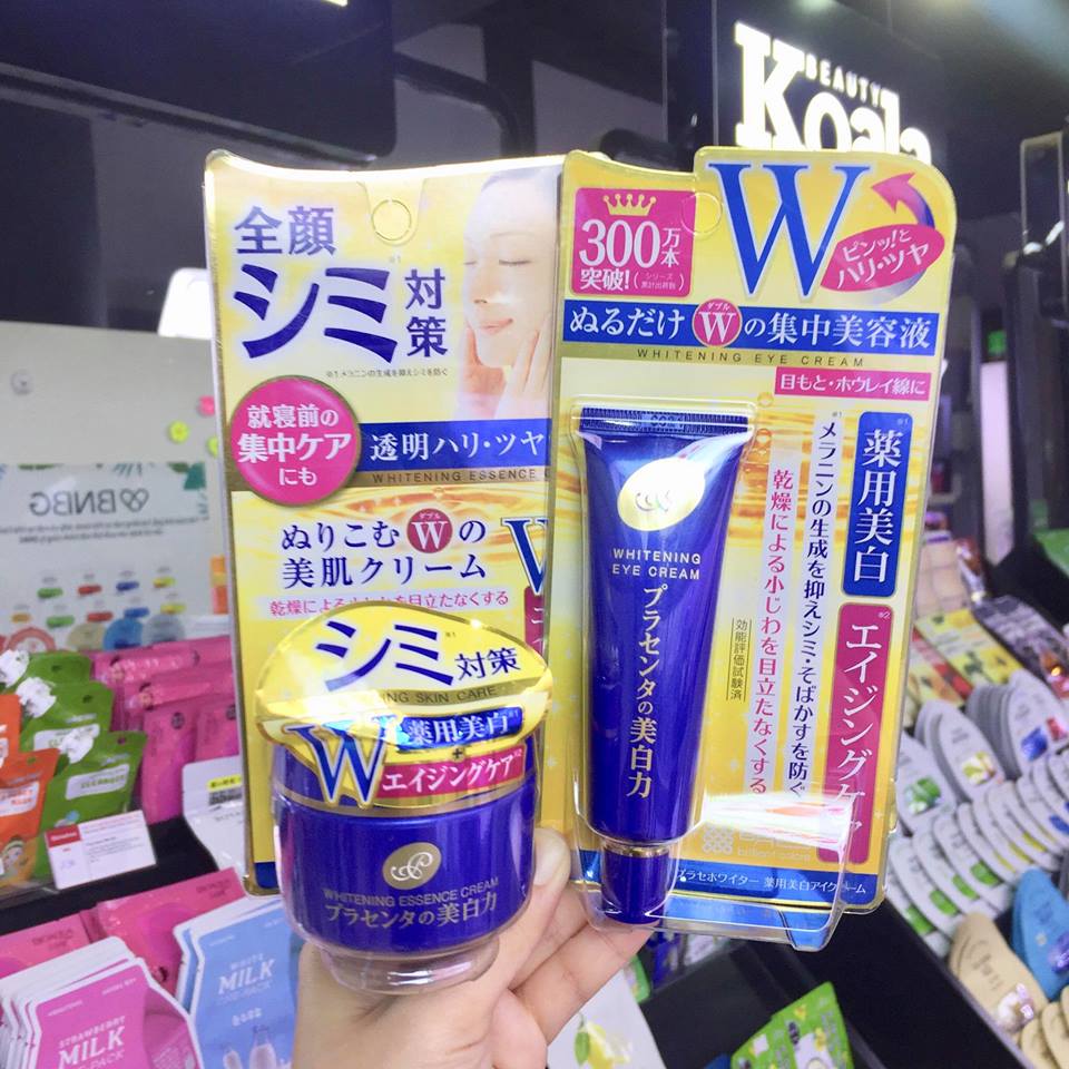 -Kem dưỡng mắt Meishoku nhau thai, chứa nồng độ cao tinh chất nhau thai cho đôi mắt khỏe mạnh với 2 tác dụng chính: trị thâm và chống lão hóa.